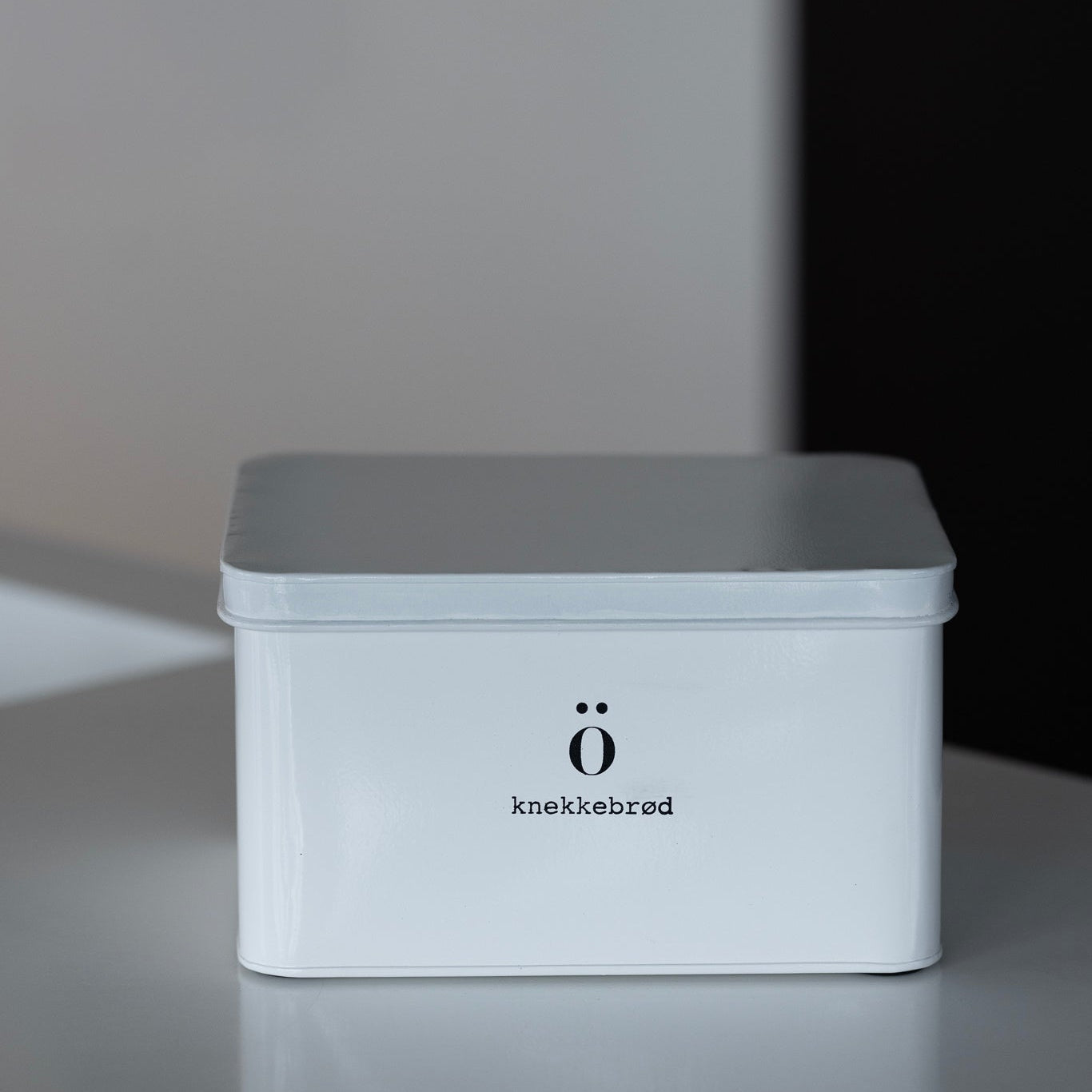 Stilren oppbevarings boks til knekkebrød i hvitmalt emalje. Denne boksen er en del av en serie oppbevaring, som er så dekorativ at den gjerne kan stå framme og skape den gode stemningen vi ønsker oss. Håndvaskes og tørkes med koppehåndkle.