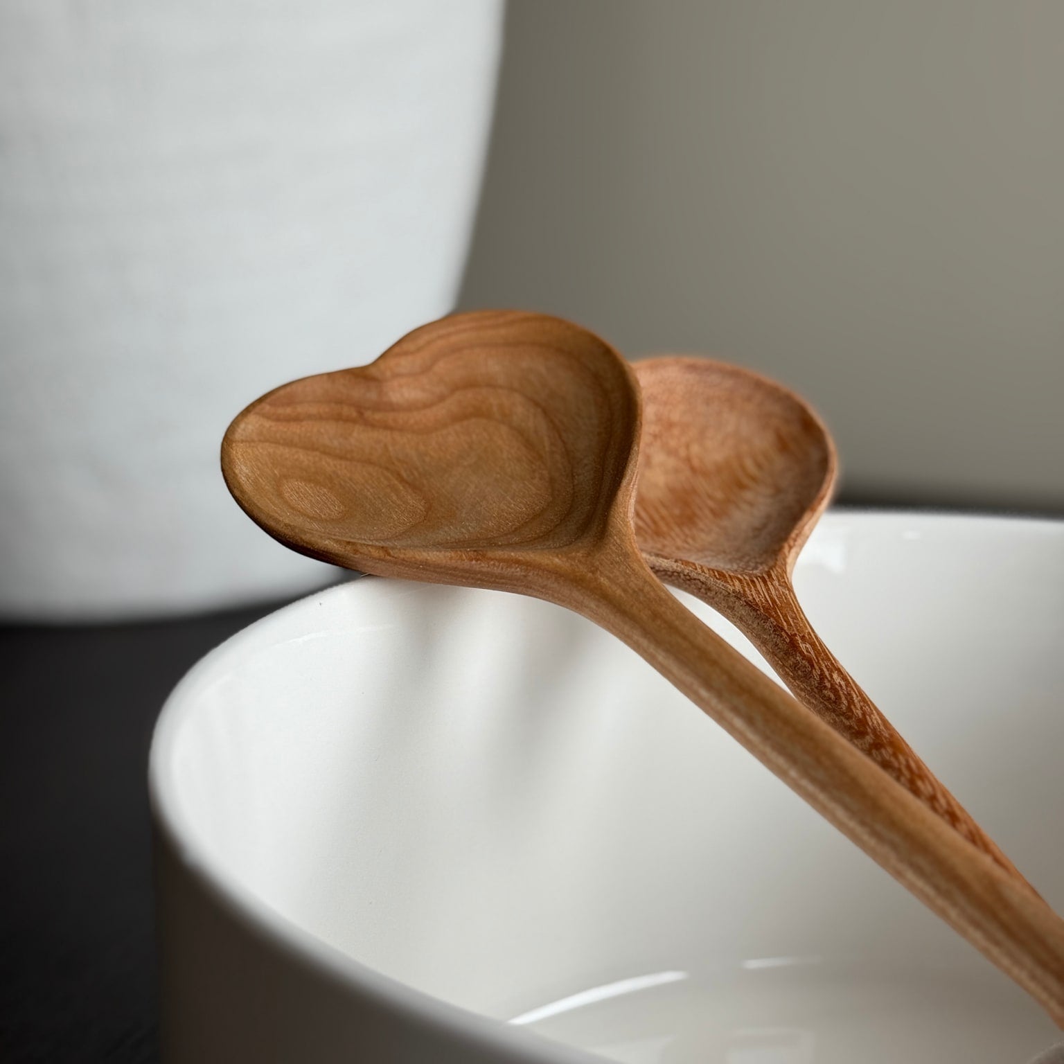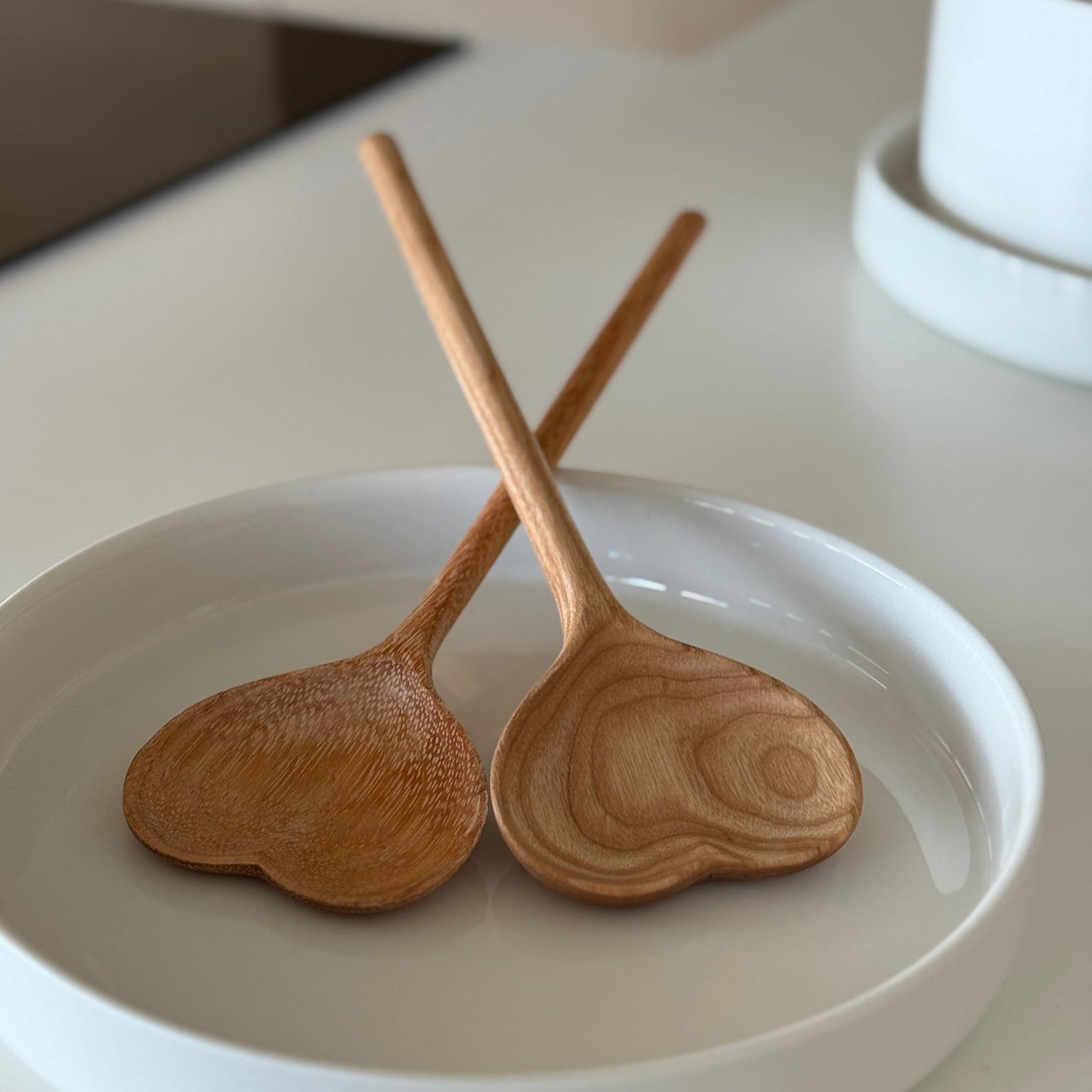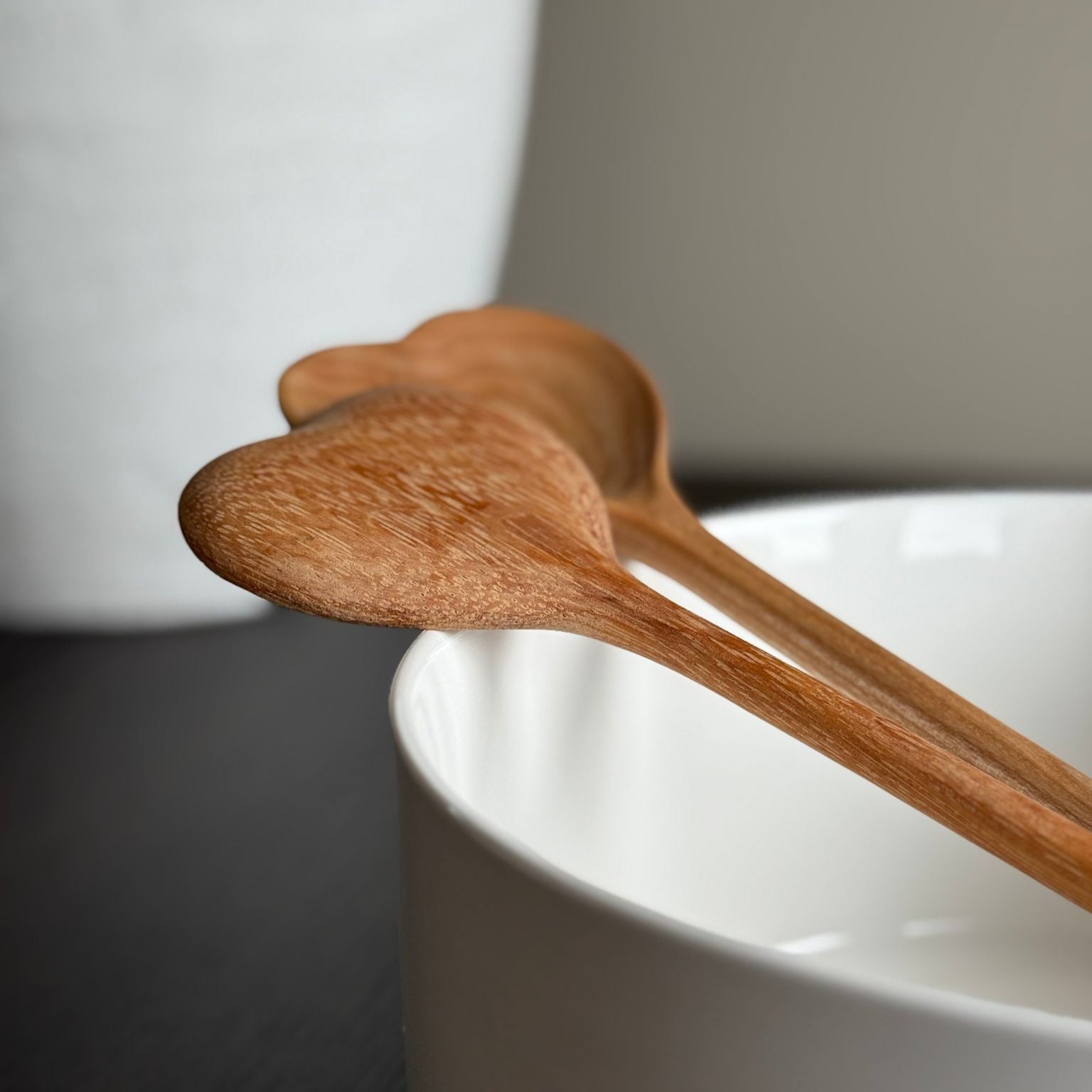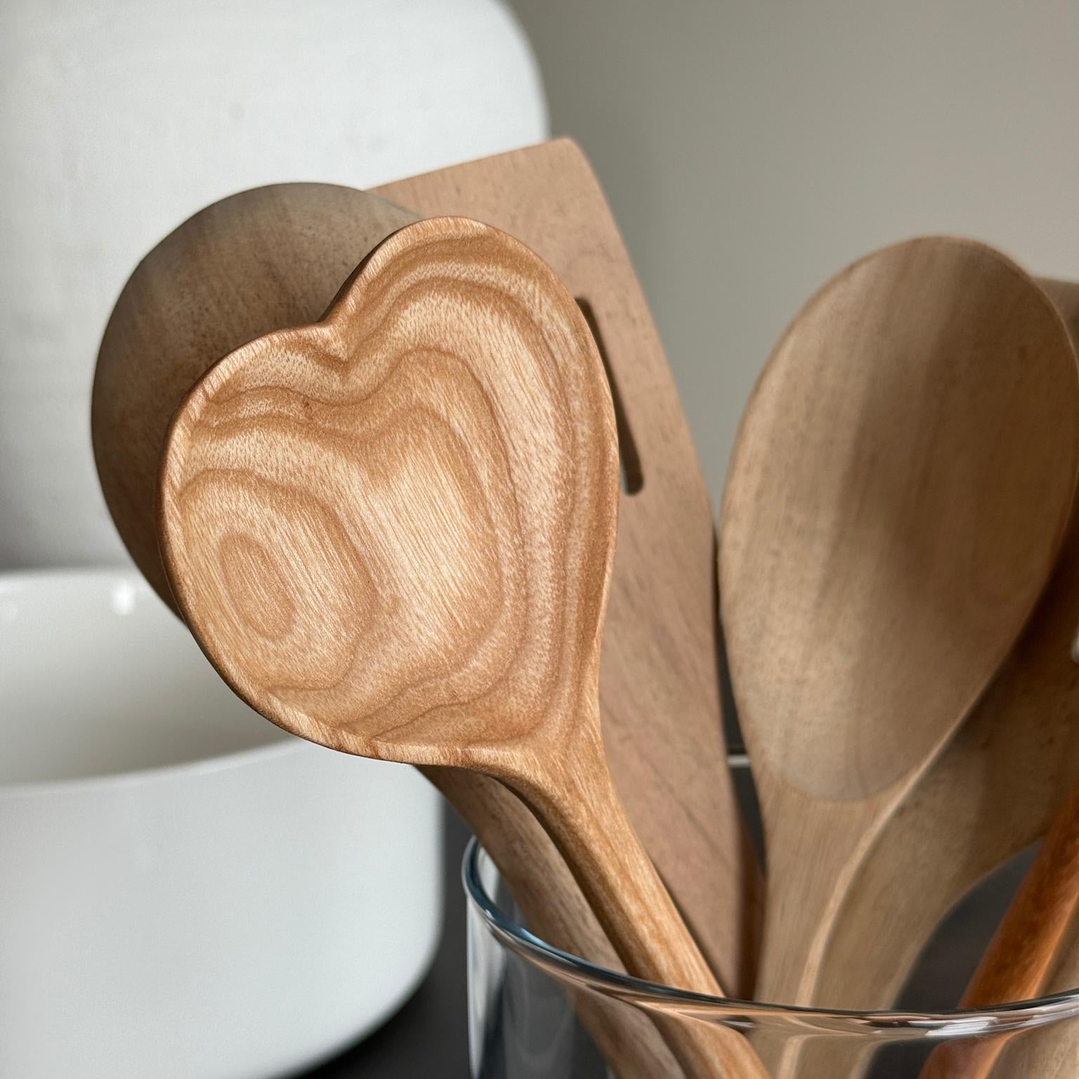 Serveringskje i akasietre. Hjertefasongen gjør den ekstra hyggelig.