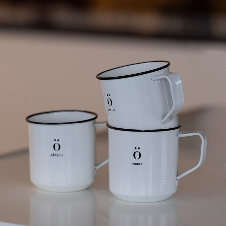 Nyt drikken med ny emalje kopp fra Sögne Home! Emaljekoppen har en myk kantovergang for å skape en behagelig overflate å drikke fra. Koppen må håndvaskes og må ikke brukes i mikrobølgeovnen, den er håndlaget og kan derfor variere noe i utseende. Fin som turkopp!